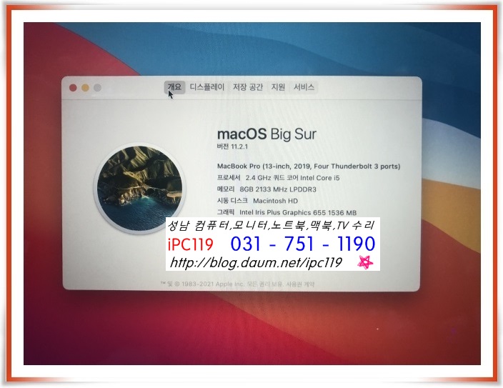성남 맥북 수리, 성남 컴퓨터 수리 iPC119입니다.