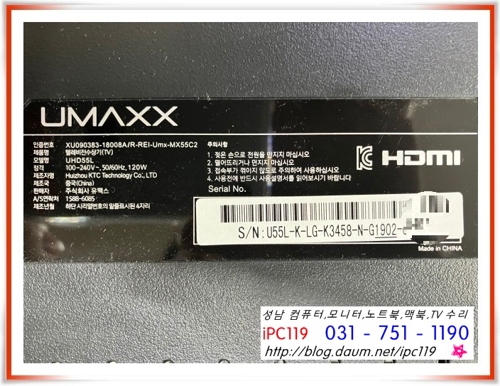 | 성남 분당 판교 TV 수리, 더함 C551UHD IPS HDR 2019 화면무, 소리만 나고 화면이 안 나와요. (55) | 2023.03.06 |
