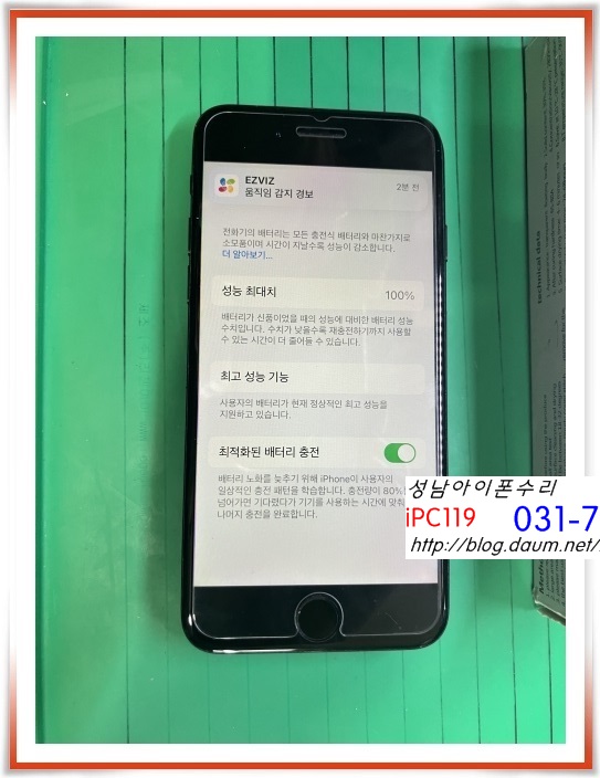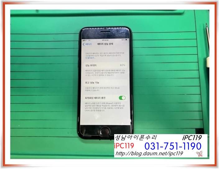 아이폰 7로 배터리가 너무 빨리 방전되는 증상으로 입고가 되었습니다.