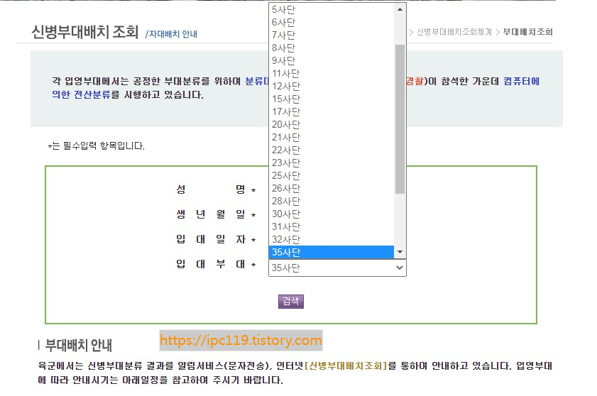 아들 부대 배치 확인하면서 조회 방법을 남겨 봅니다.