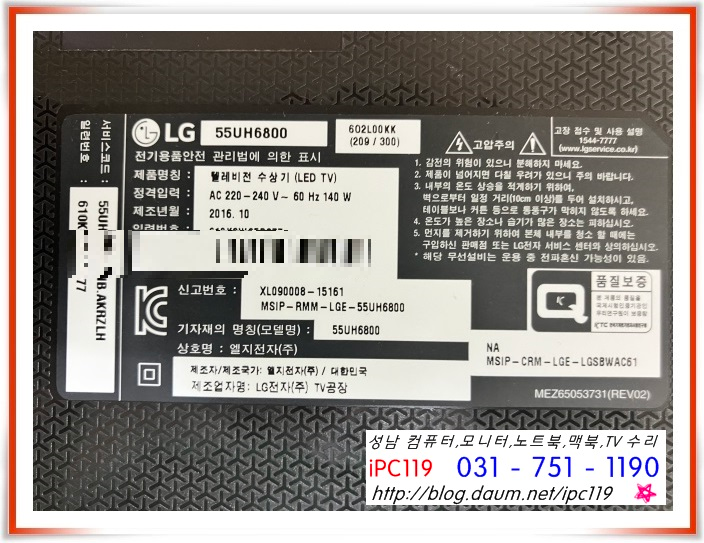 | 성남, 판교, 위례, 야탑 TV 수리, 엘지전자 LG전자 32LF501B 화면이 파랗게 나와요, 화면이 안보여요. (85) | 2023.06.13 |