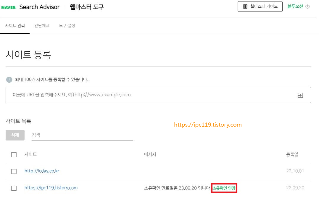 "[네이버 서치어드바이저] 소유확인 만료일을 점검해 주세요"