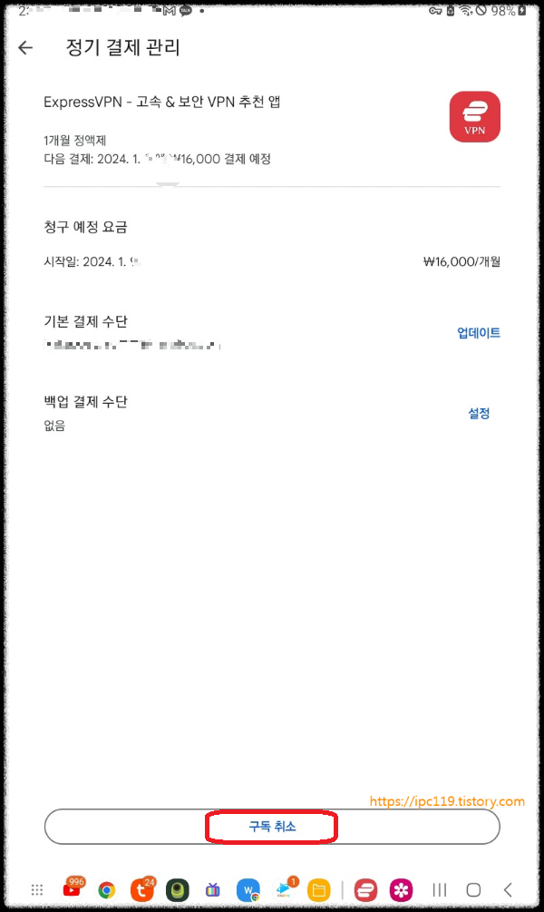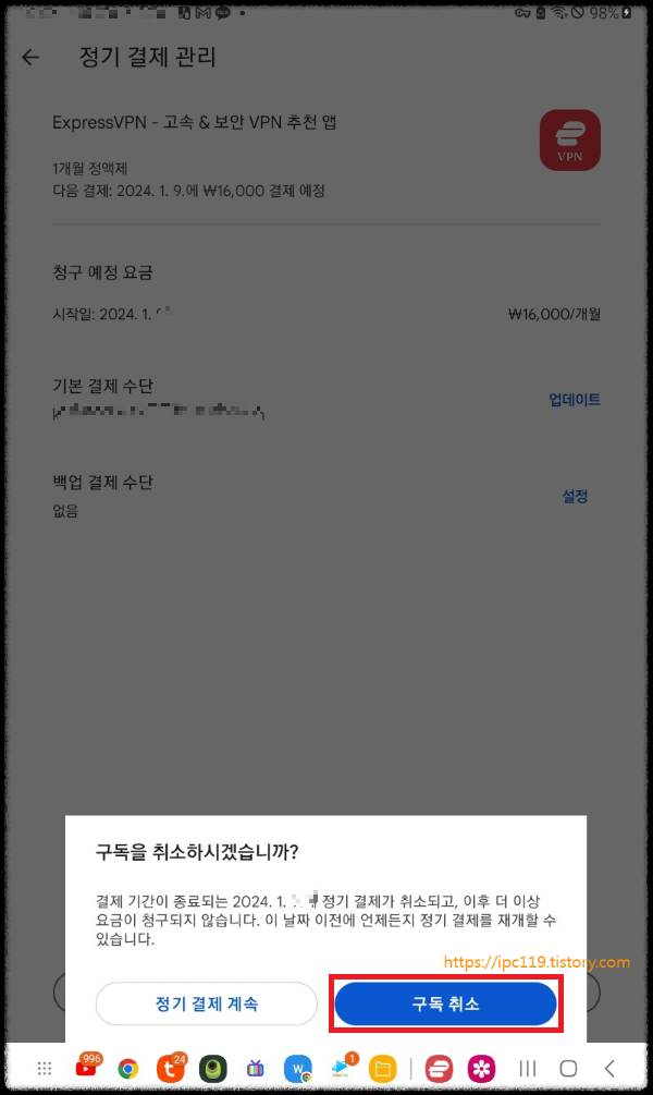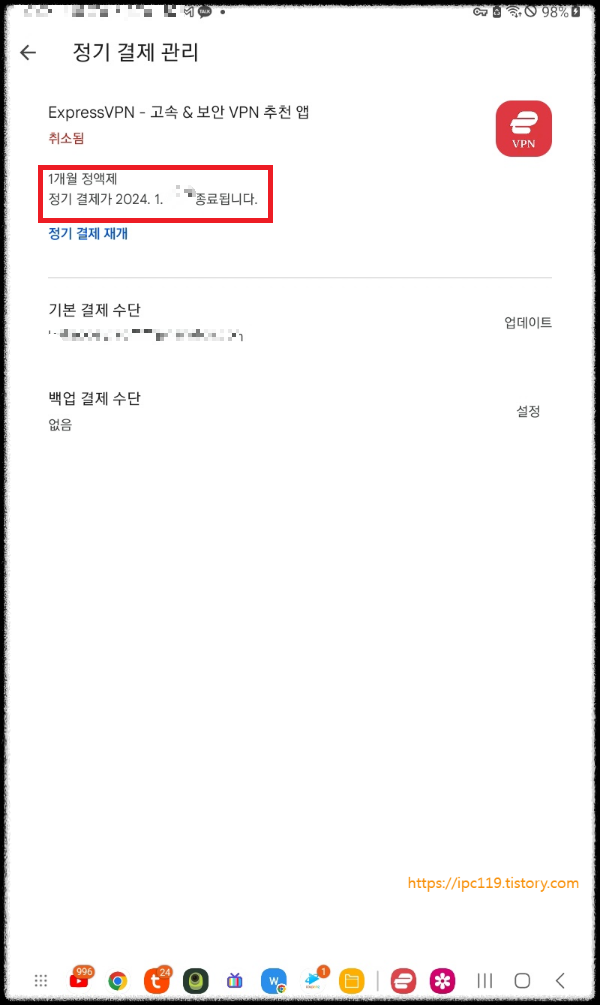 "정기 결제가 2024.1. 종료됩니다." 가 나오게 됩니다.
