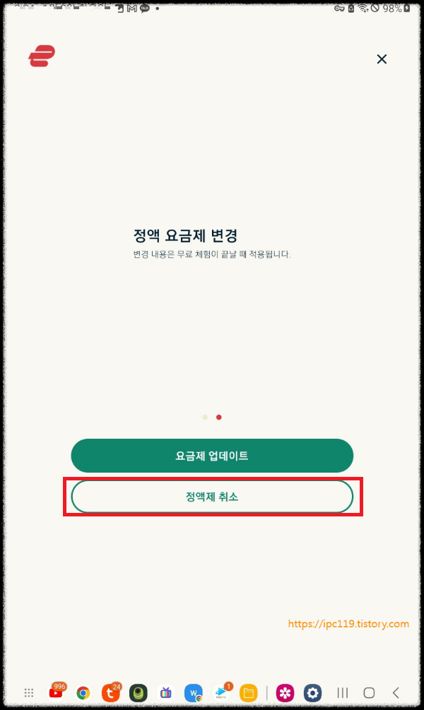 4. "정액제 취소" 클릭