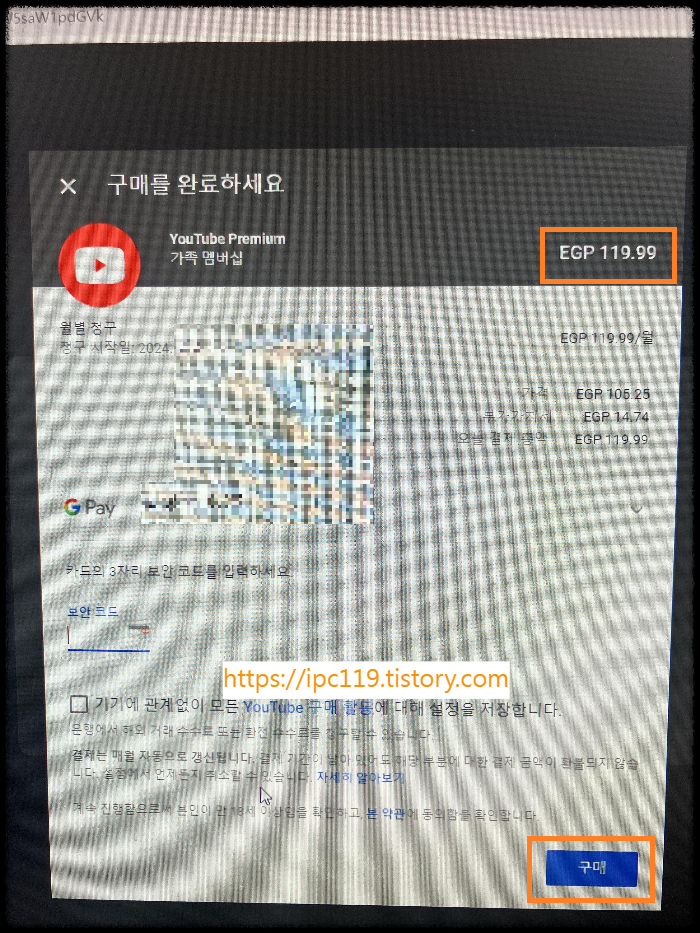 18. 가족멤버쉽 "EGP119.99" 확인하고 "구매" 클릭