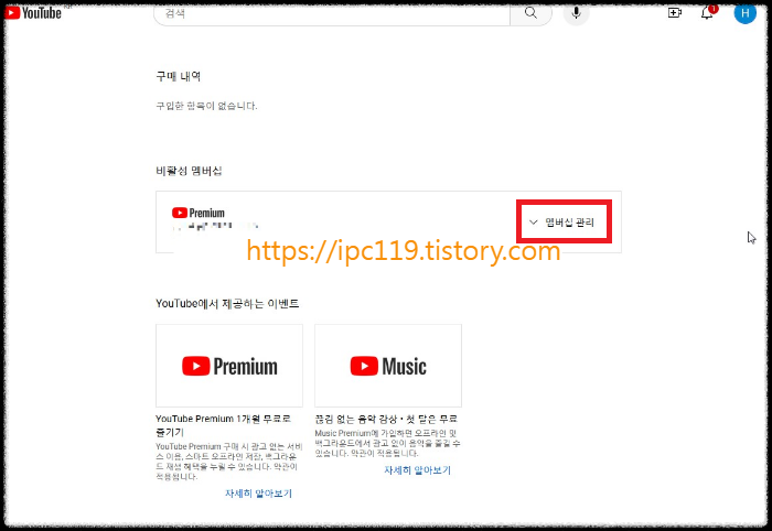 19. 유튜브 프리미엄 가족 멤버쉽이 가입이 되었습니다.