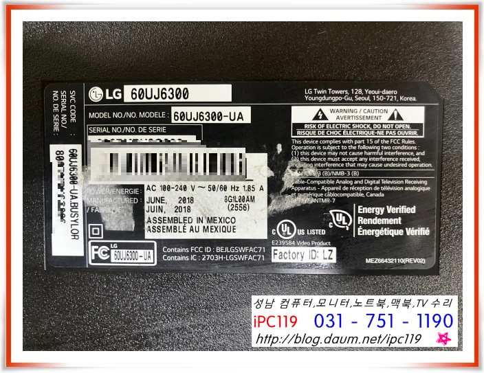 | 성남 TV 수리, LG 50LB6580 화면이 안 나와요, 백라이트 수리 (45) | 2024.08.30 |