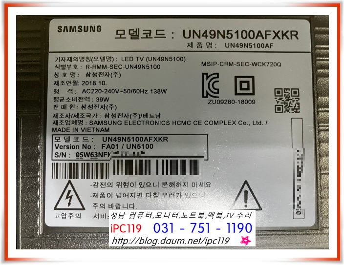 | 성남TV수리, 삼성전자 UN40F5030AF 화면이 안 나오는 증상, 백라이트 수리 (113) | 2024.07.29 |
