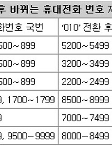 010강제통합, 01x (011,016,017,018,019) 변경된 010 번호 01x -> 010 국번 변경 규칙 (2013년최신추가)