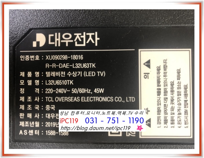 대우전자 L32U6510TK 로 화면이