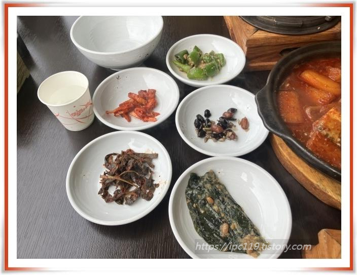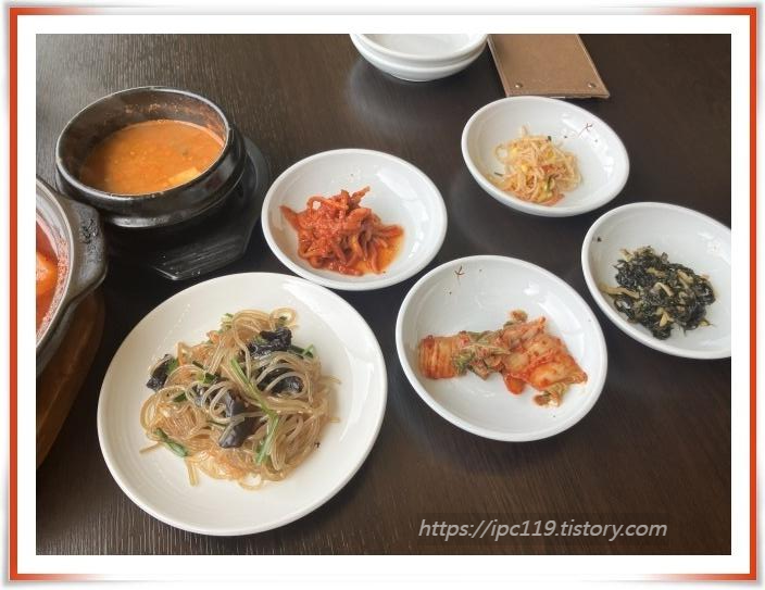 청국장, 무생채, 김치, 콩나물, 파래무침, 잡채까지