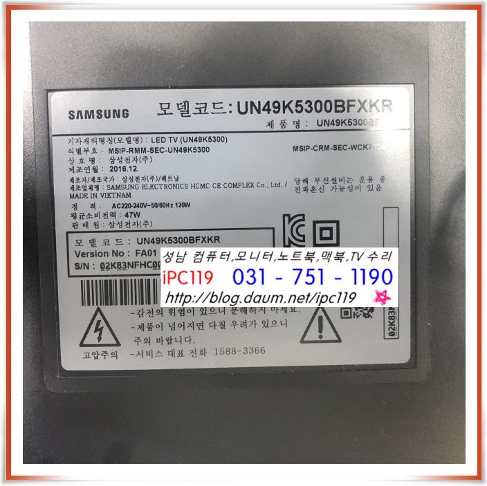 | 성남TV수리, 삼성 UN55MU6350F 전원이상 소리 나오다말다 화면 안나오고 밝아졌다 어두워졌다 반복 (0) | 2020.08.13 |