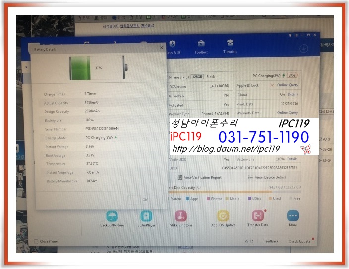 아이폰7+ 배터리 교체입니다.