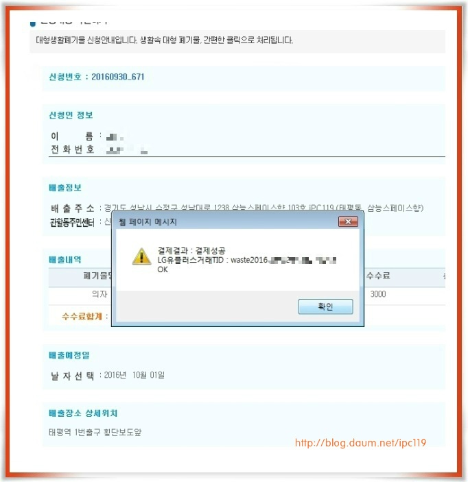 신청한 내역 이름, 주소, 전화번호, 배출품명 등이 보이는군요 ~