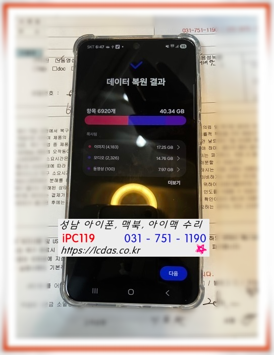 성남 태평역 iPC119: 갤럭시 S21 침수 데이터 복구 성공 사례