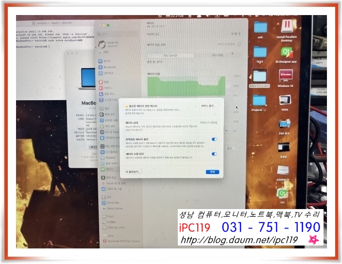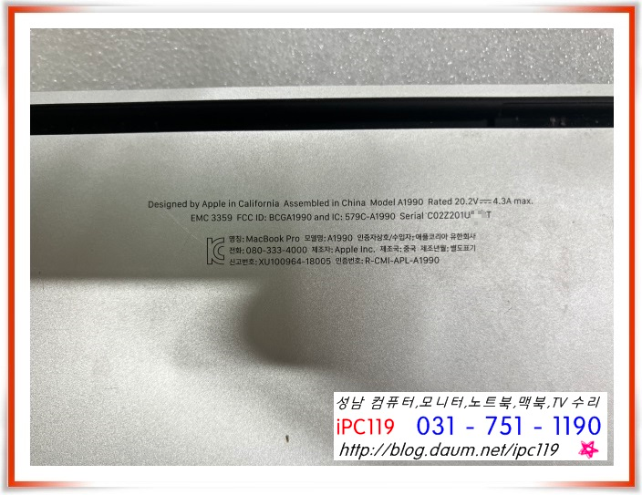 성남 맥북 수리, 성남 컴퓨터 수리 iPC119입니다.