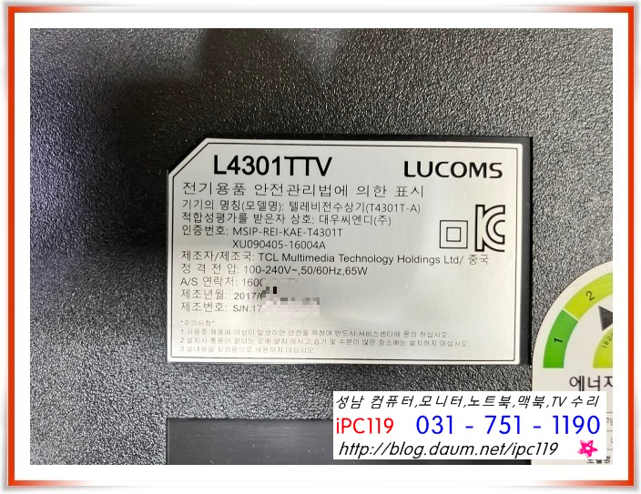 대우씨엔디 루컴즈 L4301TTV 로 화면이 안 나와요 하면서 입고가 되었습니다.