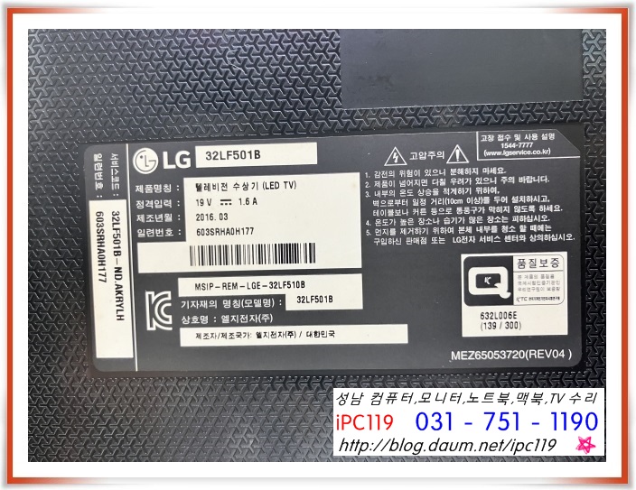 LG 32LF501B 제품으로 "화면이 파래요" 하면서 문의가 왔습니다.