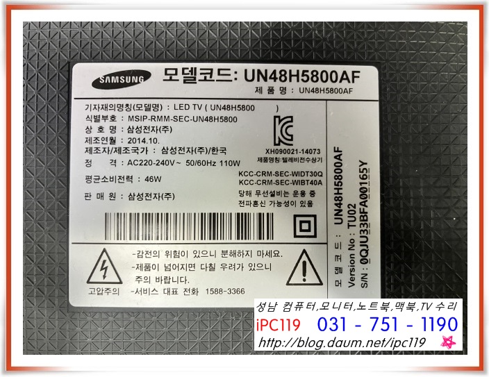 성남 모란 야탑 서현 티비 수리, UN48H5800AF 화면무 , 소리만 나오고 화면이 안 나와요, 태평역 컴퓨터 수리
