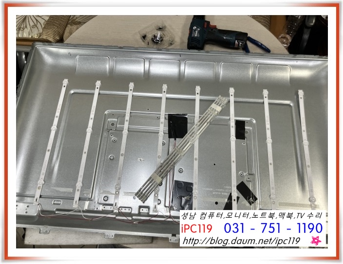 백라이트 불량으로 판별되어 분해했습니다.