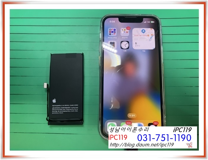 아이폰 배터리 교체가 잘 마무리되었습니다.