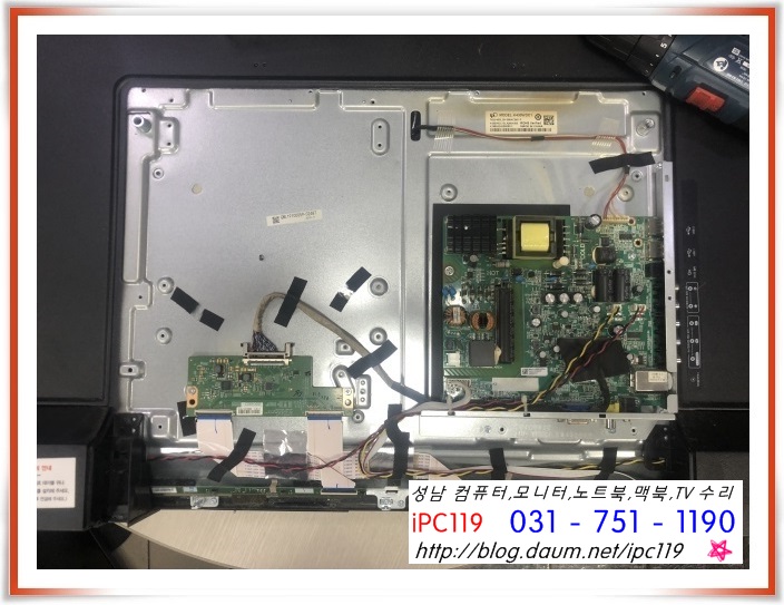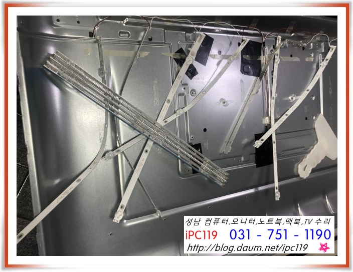 점검하기 위해 TV 뒤판 제거한 모습입니다.