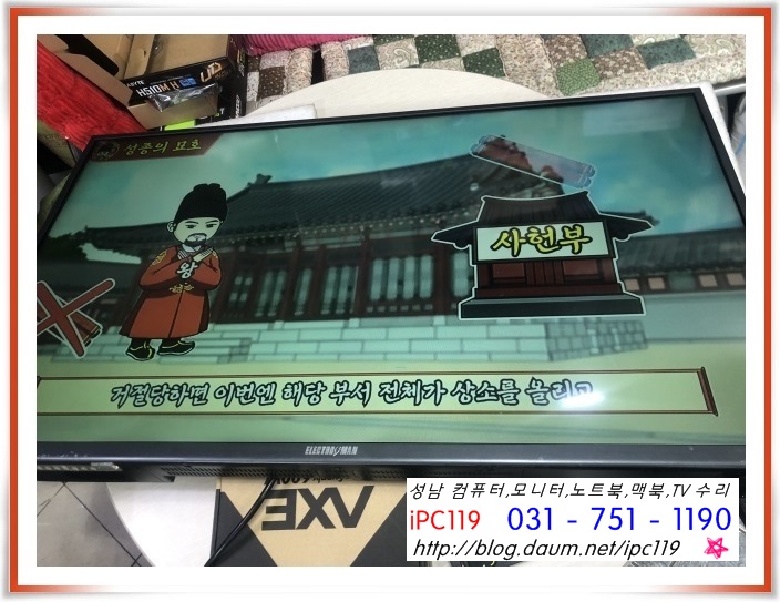 바로 앞 1층에 위치한 TV(컴퓨터) 수리점 iPC119입니다.