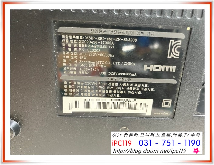 안녕하세요. iPC119입니다. 수리 문의시 원활한 상담을 위해 문자나 카톡으로 꼭 아래 내용을 보내주시기 바랍니다. 문자 : o1o - 3476 - I I 9 o 카톡 : iPC119 1. TV, 맥북(또는 고장 제품) 뒤 라벨 2. 증상