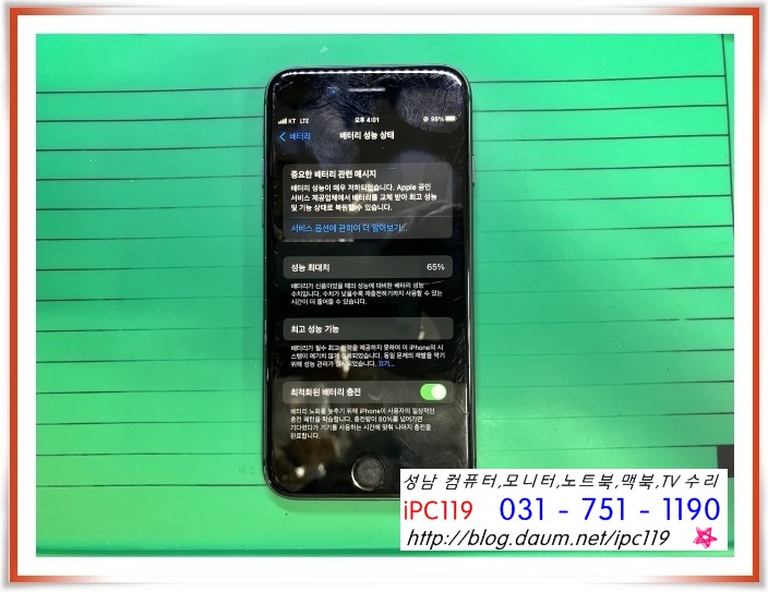 배터리 성능 최대치가 65%로 매우 매우 안 좋은 상태네요 ~