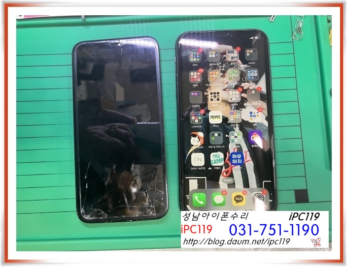 성남 아이폰 수리, 아이폰11 떨어트린후 화면이 반만 나와요, 액정 수리, 배터리 교체