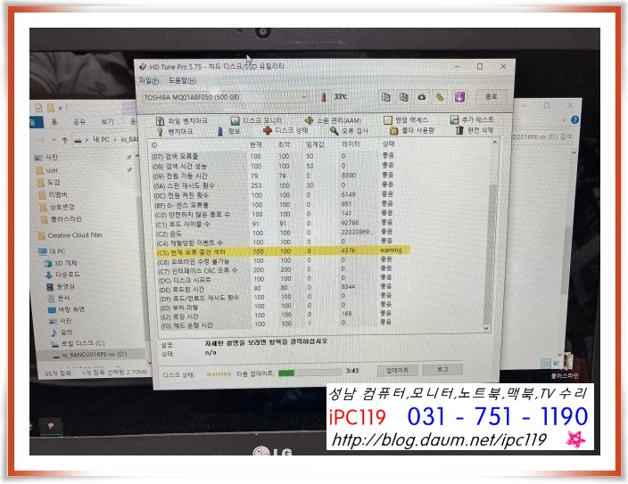 도시바 500G 하드디스크에 현재 보류 중인 섹터가 4376개 있네요
