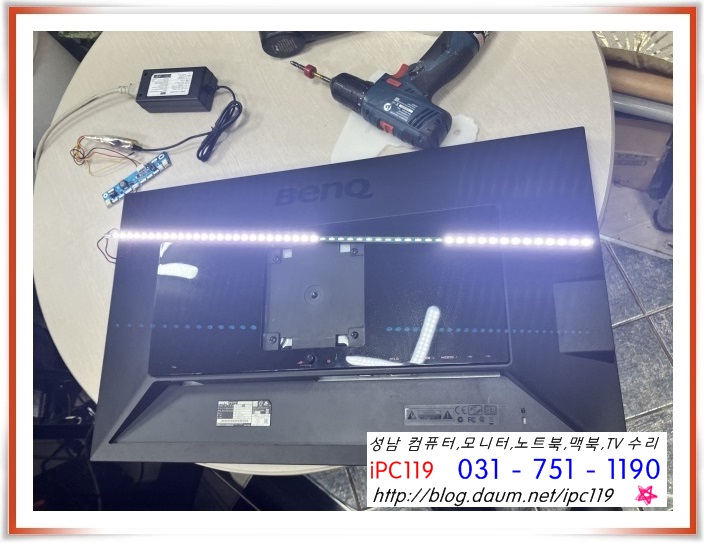제거한 백라이트 테스트 해보니 일부분이 안 들어오는군요 ~