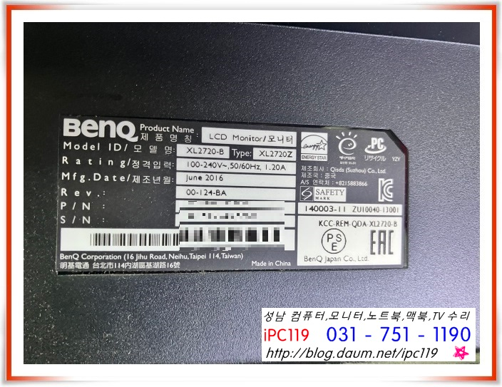 벤큐 Benq XL2720-B 제품으로 전원 켜고