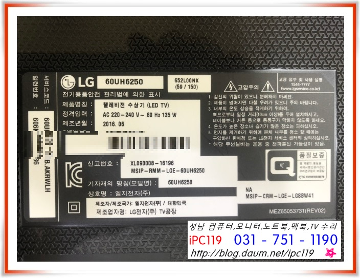 | 성남 모란역 TV 수리, LG전자 32LX530H 화면이 안 나오고 소리만 나와요 (1) | 2022.07.15 |