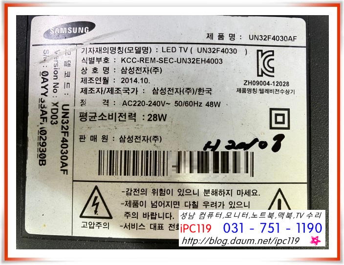 수리 문의 시에는 꼭꼭 꼭 아래 사진과 같은 뒷 라벨을