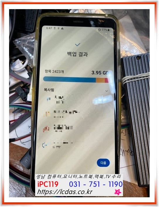 | 성남 데이터 복구, 침수로 전원이 안들어오는 갤럭시 S21 데이터 복구, 성남 태평역 iPC119 (59) | 2025.09.02 |