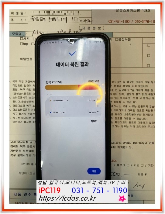 | 성남 데이터 복구, 휴대폰 갤럭시 데이터 복구, "기기 자동 꺼짐" 메세지 (138) | 2024.03.25 |