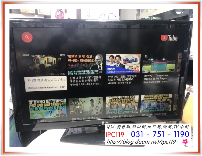 바로 앞 1층에 위치한 TV(컴퓨터, 아이폰) 수리점 iPC119입니다.