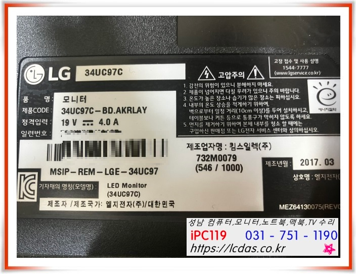 | LG 34UC97C 전원무, 전원이 안 들어와요. 성남 모니터 수리, 태평역 , 위례, 가천대, 분당, 야탑 모니터 수리 (105) | 2023.11.06 |