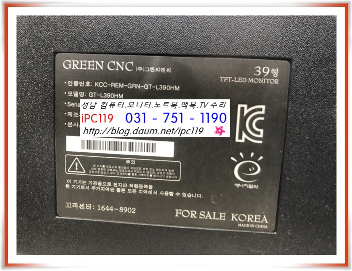 그린씨앤씨 GT-L390HM로 소리만 나오고 화면이