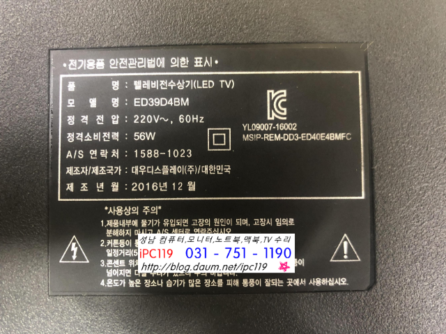 ( 갑자기 전화해서 "TV 수리비 얼마예요" 하심 답변하기 힘듭니다 ~ )
