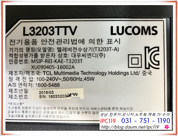 | 위례 TV 수리, 오리온티엠 ORT-32D1 전원이상 증상, 성남, 가천대, 복정역 (137) | 2023.12.02 |
