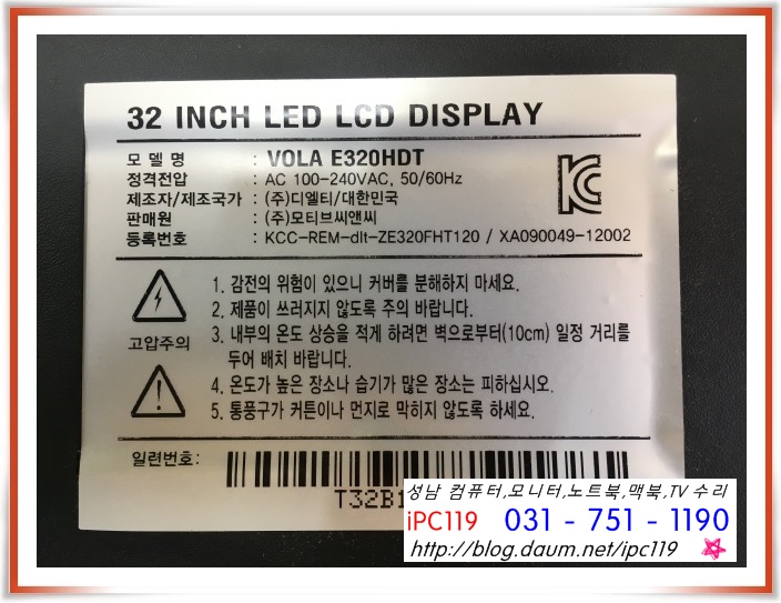성남 TV 수리, 디엘티 VOLA E320HDT 화면이 나오다 안나오다 화면무