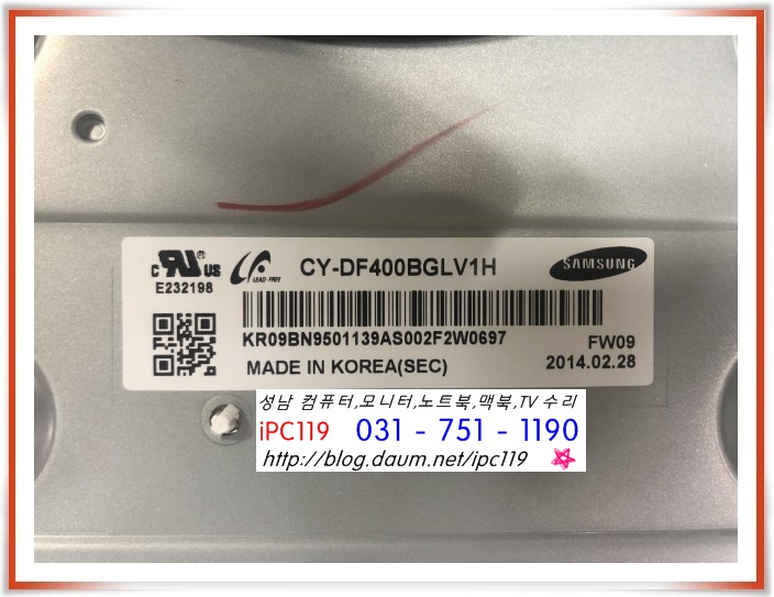 수리 문의 시에는 아래 사진과 같은 뒷 라벨을