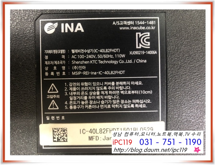 인아 IC-40L82FHDT 로 화면이