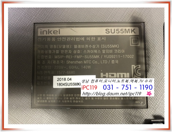 수리 문의 시에는 아래 사진과 같은 뒷 라벨을