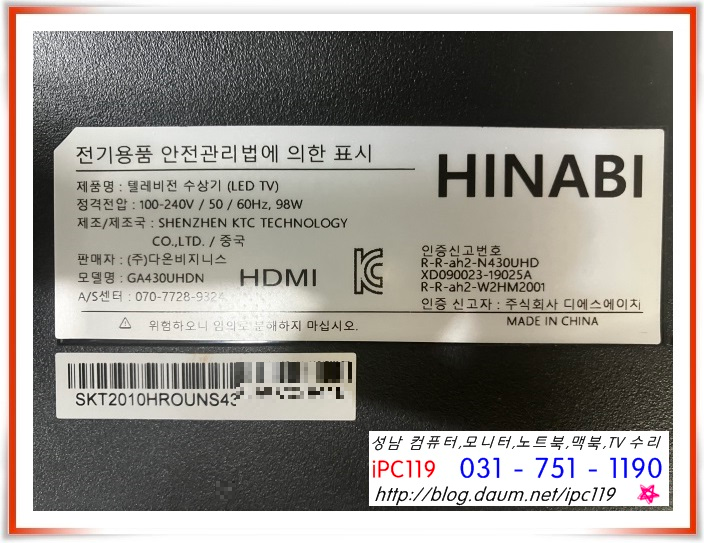 | 성남TV수리, 유맥스 UMAX UHD55L 화면이 안 나오고 소리만 나와요. 백라이트 수리 (28) | 2025.02.21 |
