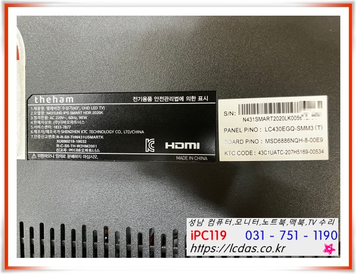 | 성남TV수리, 다온비지니스 GA430UHDN HINABI N430UHD 스마트TV 시청 중 화면 꺼짐 증상 (34) | 2025.02.26 |