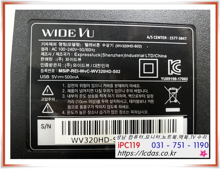 수리 문의 시에는 아래 사진과 같은 뒷 라벨을
