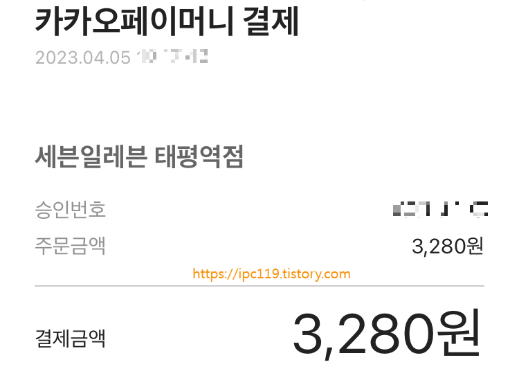 전 티멤버십 10% 할인과 카카오페이머니 20% 할인으로 3,280원에 구입했어요 ~